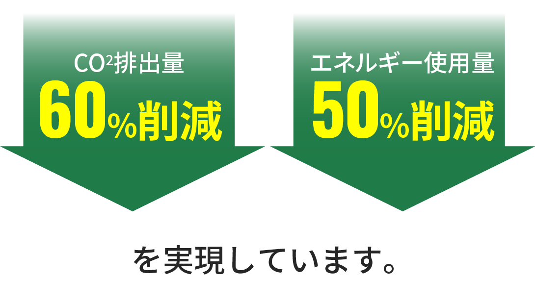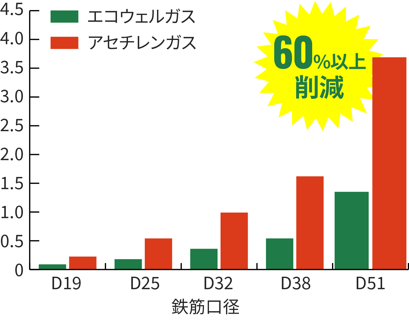 エコスピード工法(⾼分⼦天然ガス圧接継⼿)は、 還元材の新技術により作業性‧安全性の向上を実現し、さらに天然ガス使⽤によりCO2排出量を60%以上削減できます。